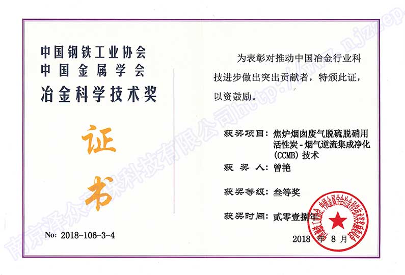 南京澤眾環(huán)??萍加邢薰咀溆谀暇┦杏昊ㄅ_(tái)區(qū),注冊(cè)資本6000萬(wàn)元,2017年被認(rèn)定為高新技術(shù)企業(yè),2018年被認(rèn)定為瞪羚企業(yè),入選中國(guó)鋼鐵技術(shù)與服務(wù)供應(yīng)商品牌企業(yè),被評(píng)為鋼鐵產(chǎn)業(yè)鏈綠色標(biāo)桿企業(yè),與浙江工業(yè)大學(xué)合作成立聯(lián)合研發(fā)中心,入股河南安鋼澤眾冶金設(shè)計(jì)有限責(zé)任公司,牽頭起草《燒結(jié)煙氣活性焦干法脫硫、脫硝技術(shù)規(guī)范》和《焦?fàn)t煙氣聯(lián)合脫硫脫硝技術(shù)規(guī)范》。 公司專(zhuān)長(zhǎng)于活性炭煙氣凈化技術(shù),創(chuàng)新能力突出,成功研發(fā)具有獨(dú)立自主知識(shí)產(chǎn)權(quán)的活性炭-煙氣逆流集成凈化CCMB(ActivatedCarbon Countercurrent Moving Bed)技術(shù),形成獨(dú)立自主知識(shí)產(chǎn)權(quán)體系,由中國(guó)金屬學(xué)會(huì)評(píng)價(jià)鑒定達(dá)到國(guó)際領(lǐng)先水平,獲得冶金科技三等獎(jiǎng),被評(píng)為“鋼鐵產(chǎn)業(yè)鏈綠色低碳好技術(shù)”,入選中國(guó)鋼鐵工業(yè)協(xié)會(huì)先進(jìn)節(jié)能環(huán)保技術(shù),入選生態(tài)環(huán)境部國(guó)家先進(jìn)污染防治技術(shù)目錄推廣技術(shù)。